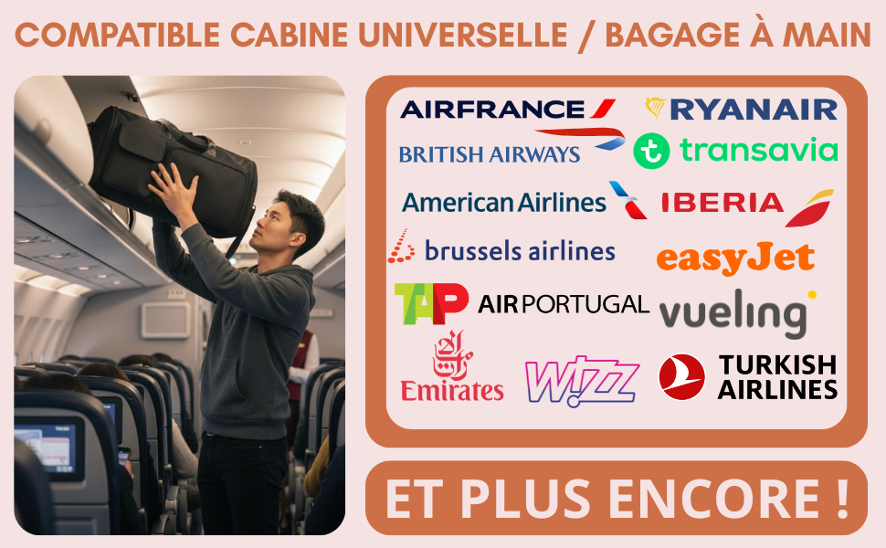 Oui, Moduleva a été conçu pour respecter les dimensions standards cabine de la plupart des compagnies aériennes. Il se glisse facilement dans le compartiment supérieur.